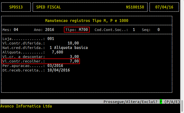 Rotina: | Manutenção Registros Tipo M, P e 1000 |
