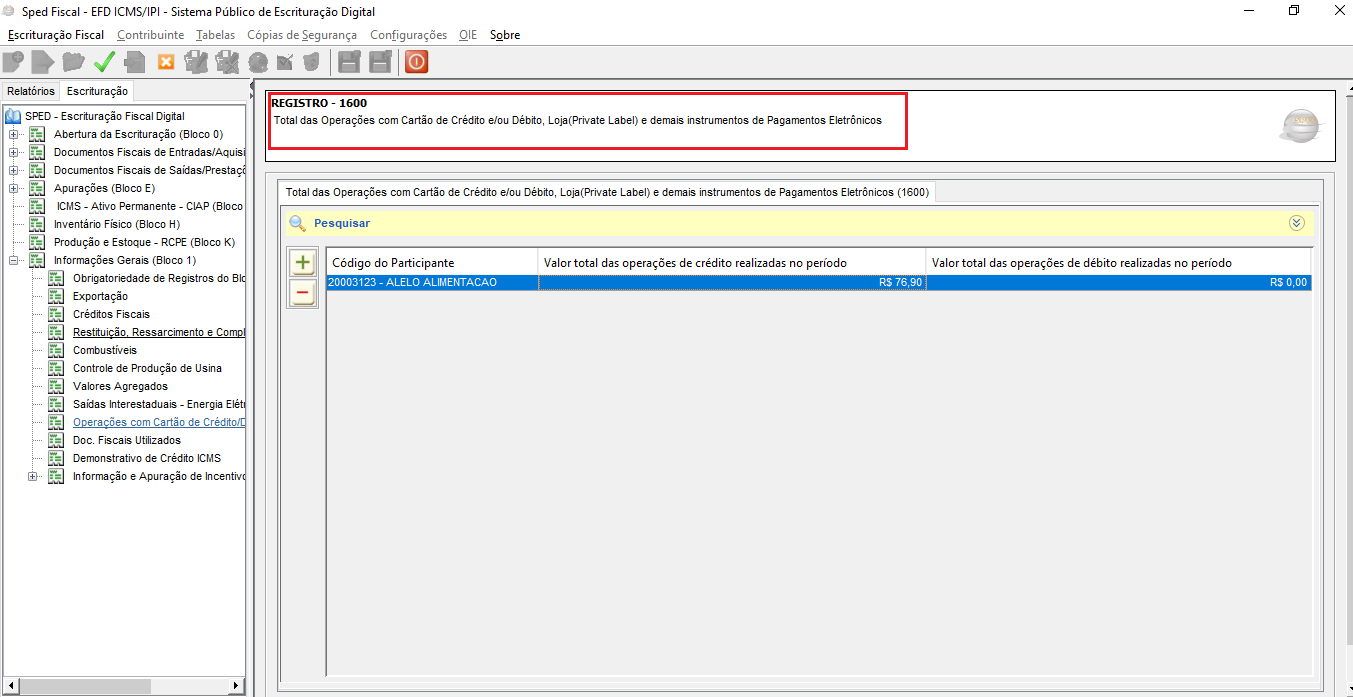 O registro 1600, referente ao Total das Operações com cartão de crédito ou débito), não será mais gerado.