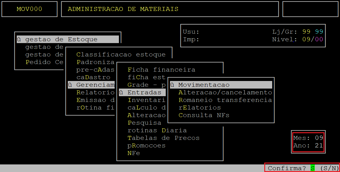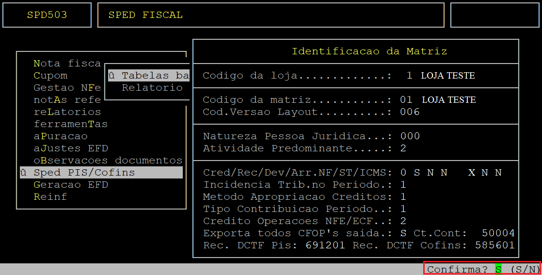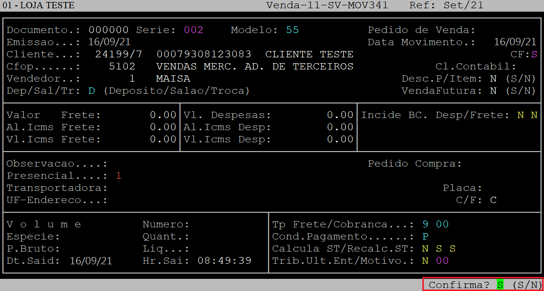 Em seguida ao ser exibida a pergunta " Confirma? ", aperte a tecla Enter ou informe a letra S para confirmar.