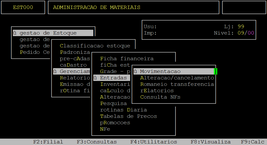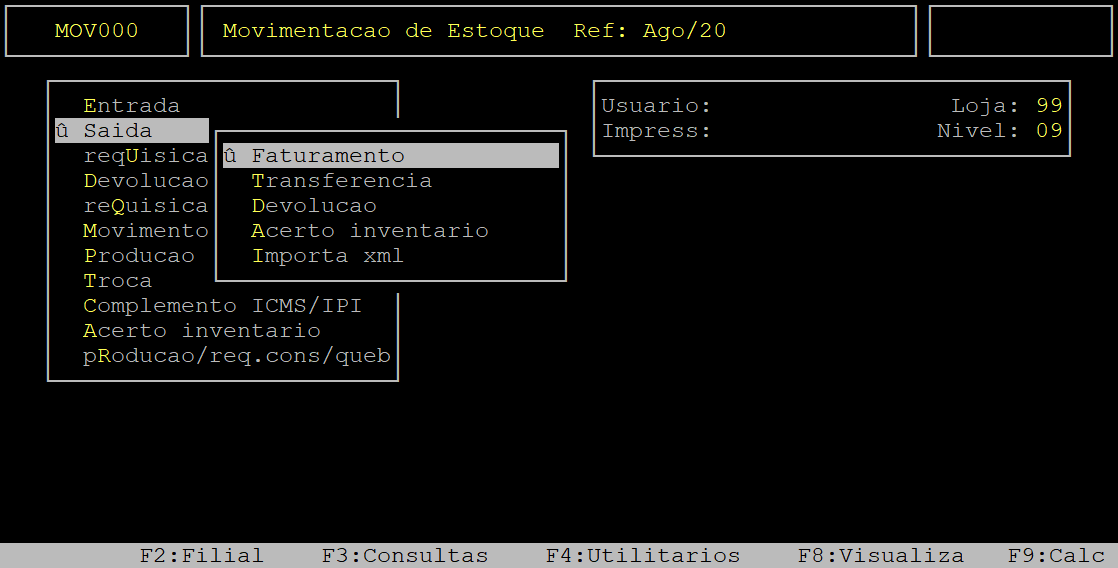 Para emitir uma nota fiscal de venda, acesse a localização citada acima. Utilize as setas do teclado para selecionar os caminhos e, aperte a tecla Enter para confirmá-los.