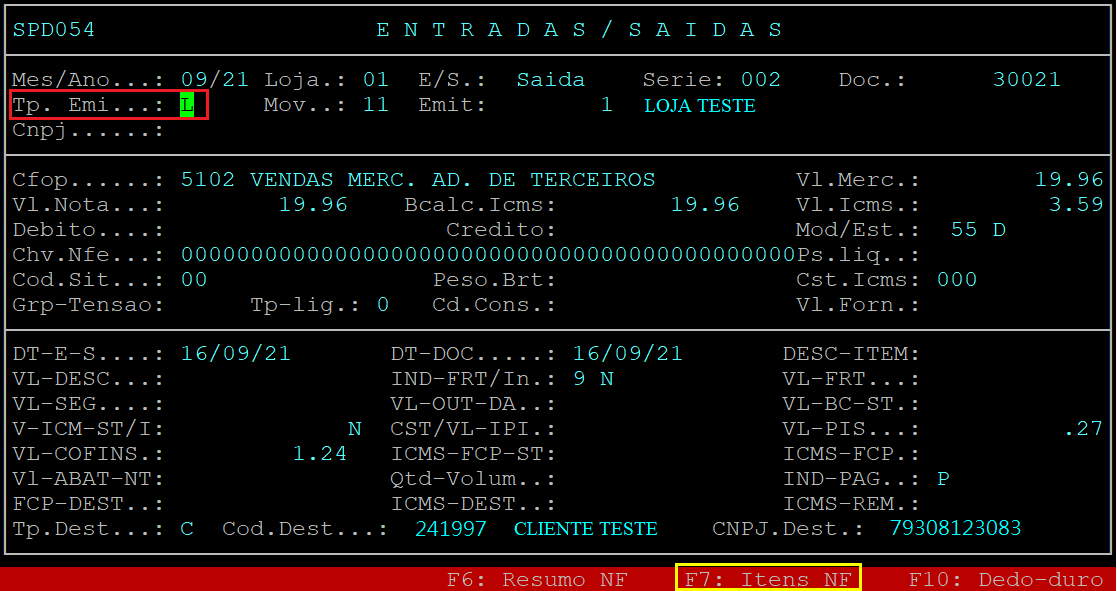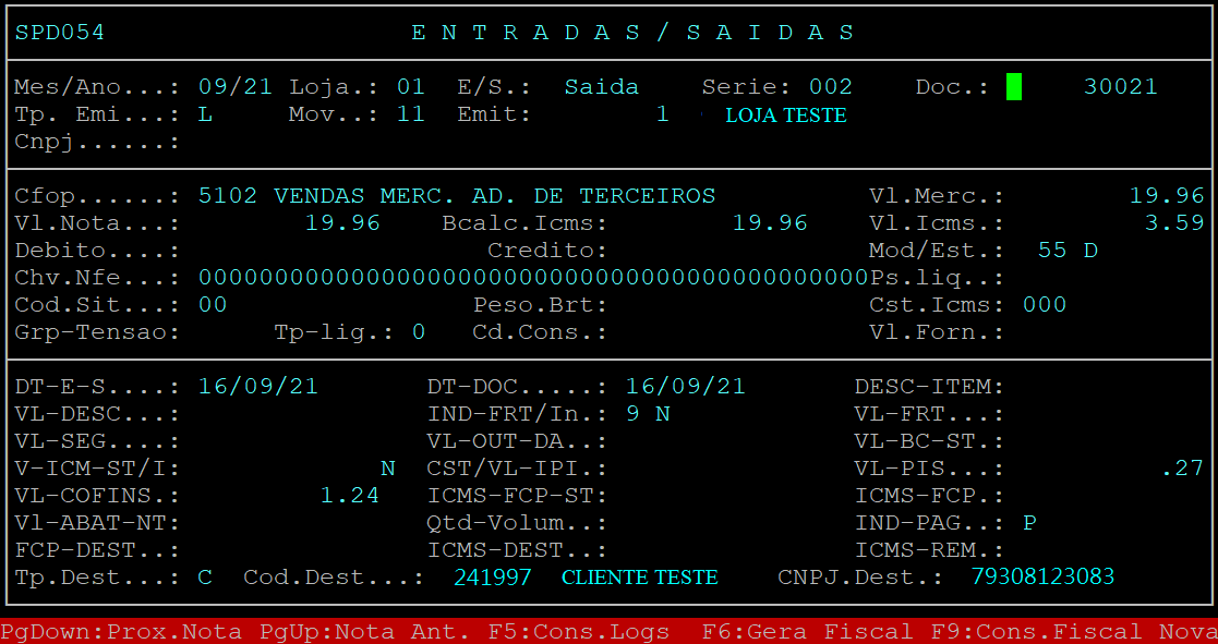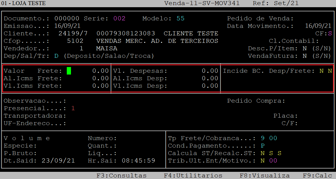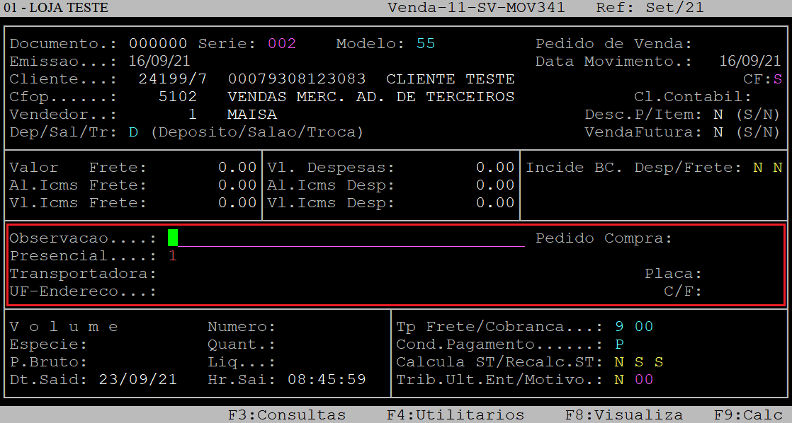 | Dt.Said: | Esse campo será preenchido automaticamente com a data de saída da mercadoria. Aperte a tecla Enter para prosseguir. |