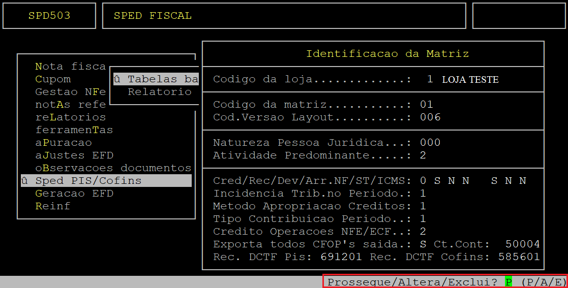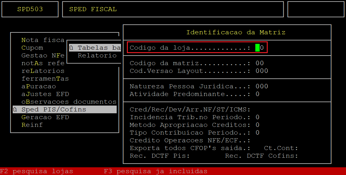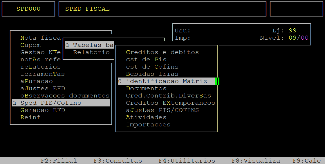 | Localização: | SPED EFD - NFe NFCe / Sped PIS - Cofins / Tabelas Básicas / identificação Matriz |