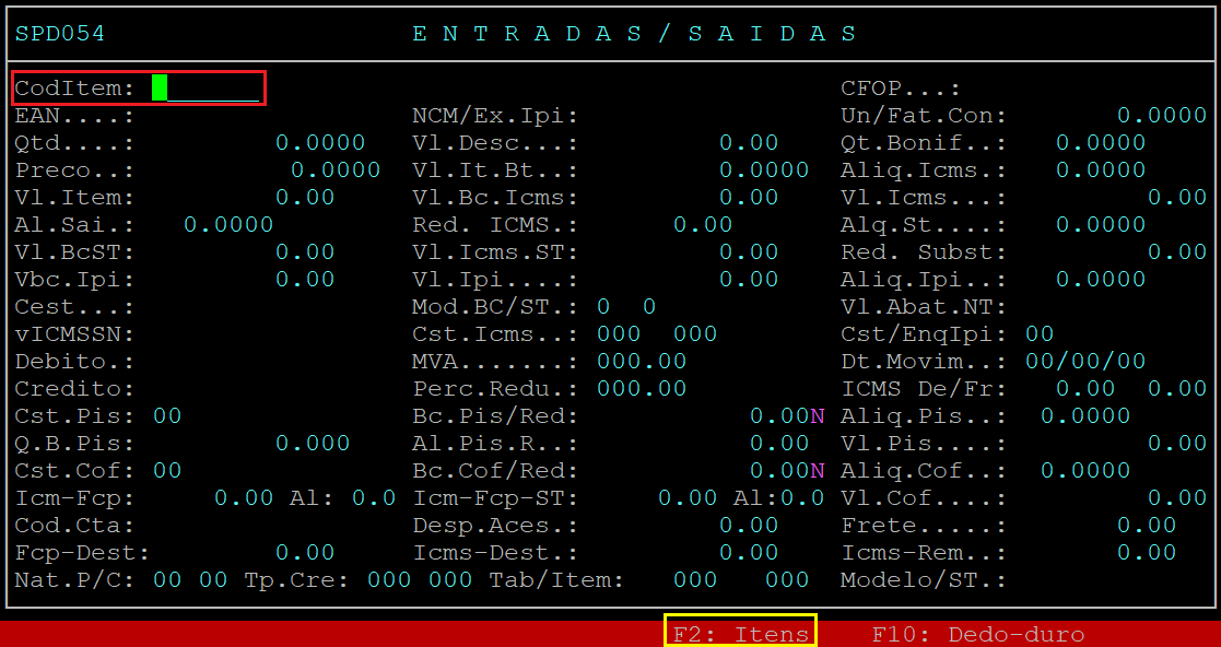 A seguir, aperte a tecla Enter para percorrer pelos campos até alcançar o campo ICMS.