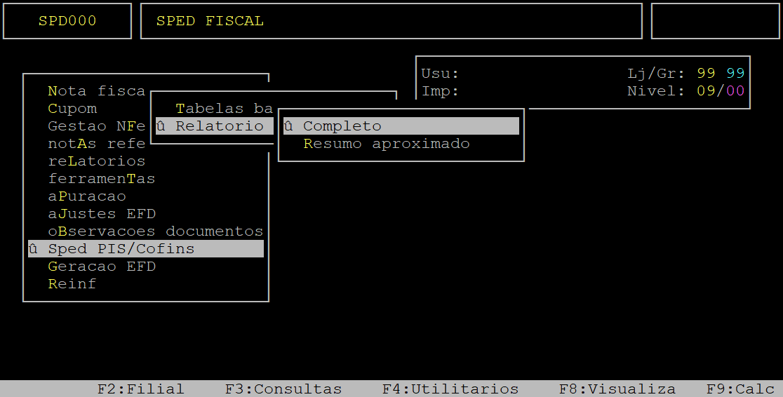 | Localização: | SPED - EFD NFe - NFCe / Sped PIS - Cofins / Relatório PIS - COFINS / Completo |