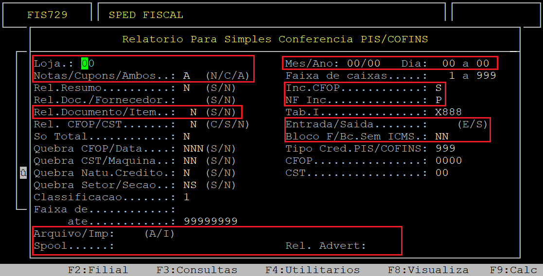 Ao acessar a rotina Relatorio Para Simples Conferencia PIS/COFINS, preencha os campos conforme desejado.