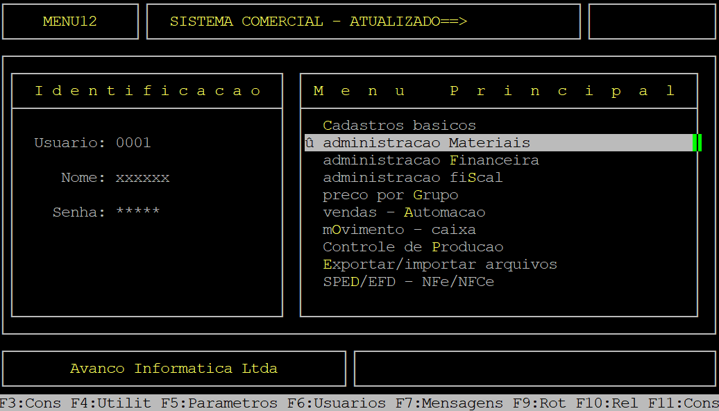 Ao abrir a janela de referência, se o mês e o ano estiverem incorretos informe a letra N na pergunta " Confirma? " e, em seguida, informe corretamente o mês no campo Mes (com dois dígitos) e o ano no campo Ano (com dois dígitos) e, aperte a tecla Enter ou S para prosseguir para a próxima tela.