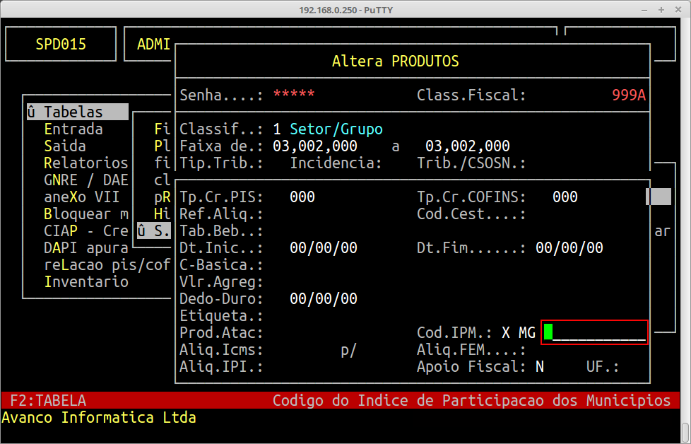 Observação: Antes de incluir o código IPM por faixa de produtos faça o backup do cadastro de produtos.