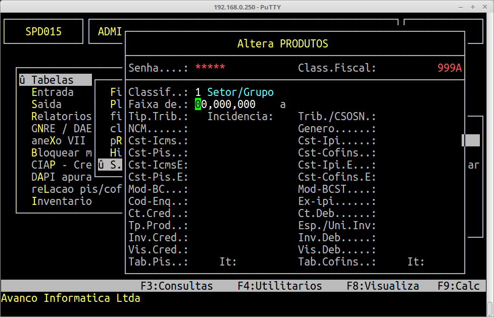 Localização: | Administração Fiscal / Tabelas / S.P.E.D. NFE / Mercadoria / Produtos / por Faixa |