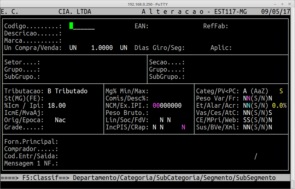 Descrição: | Rotina para alteração do cadastro de produtos |