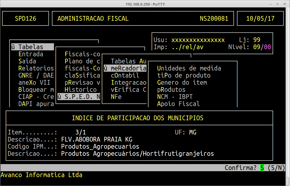 Localização: | Administração Fiscal / Tabelas / S.P.E.D. NFE / Mercadoria / Tabela IPM - Item x UF |