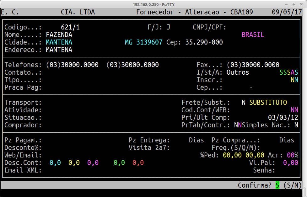 Em seguida, pressione a tecla ENTER até que a mensagem de confirmação das alterações seja exibida, pressione a tecla S para confirmar.