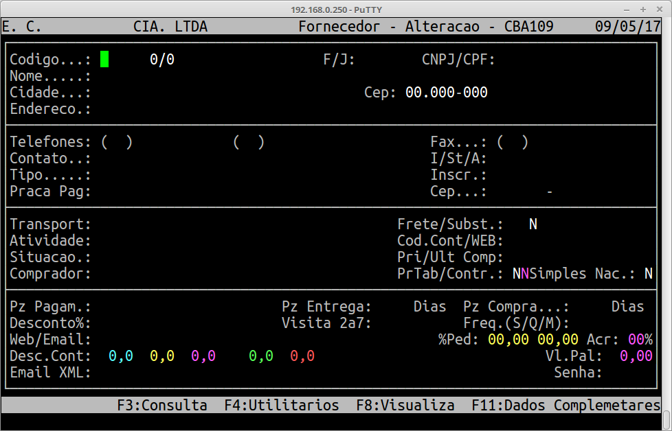 Descrição: | Rotina de alteração do cadastro de Fornecedor |