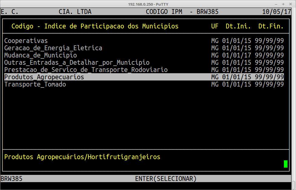 Pressione a tecla ENTER até a segunda tela da rotina. No campo Cod. IPM, pressione a tecla X.