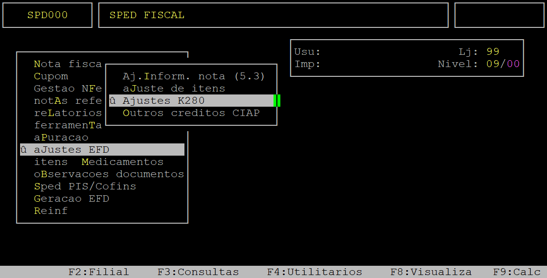 Localização: | SPED EFD - NFe NFCe / Ajustes EFD / Ajustes K280 |