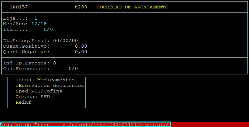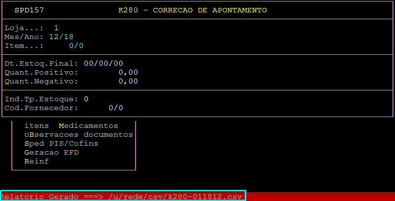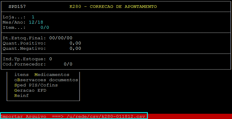 Ao aparecer a mensagem " Importar Arquivo ===> /u/rede/csv/k280-LLAAMM ", pressione a tecla Enter.