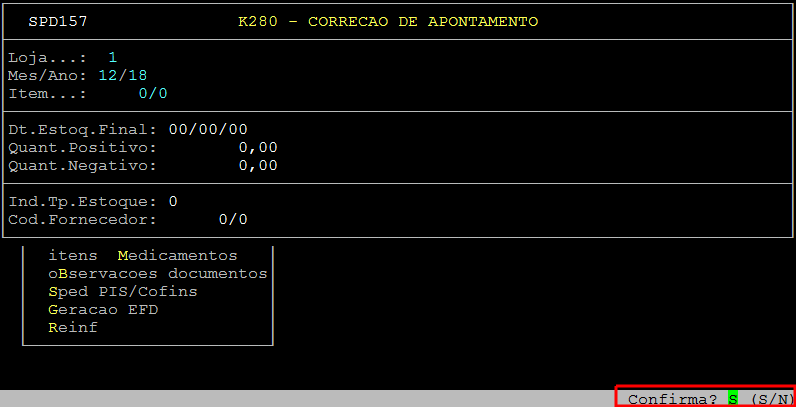Esta rotina, permite ao usuário corrigir o estoque digitando os itens individualmente.
