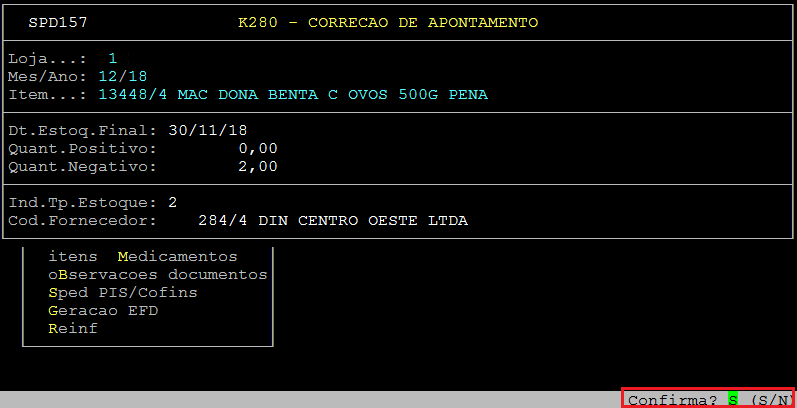 Em seguida, o sistema exibirá a pergunta " Confirma? ", no qual deverá pressionar a tecla Enter ou S para confirmar a importação.
