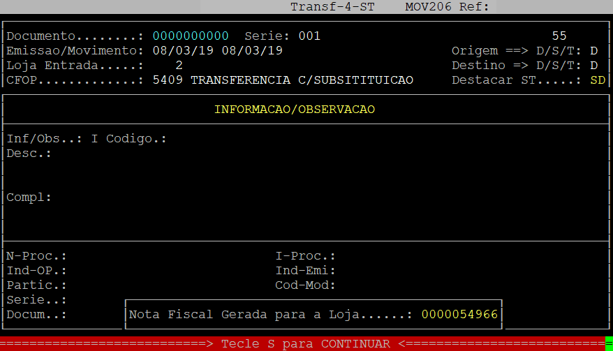 Caso não tenha selecionado a loja correta para emissão da nota de transferência, pressione a tecla F2 e informe a loja desejada.