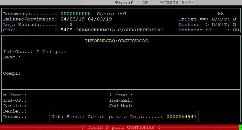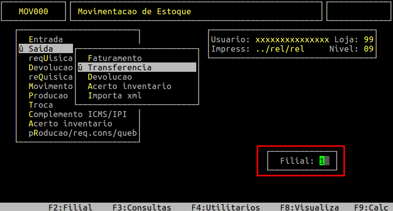 Caso não tenha selecionado a loja correta para emissão da nota de transferência, pressione a tecla F2 e informe a loja desejada.