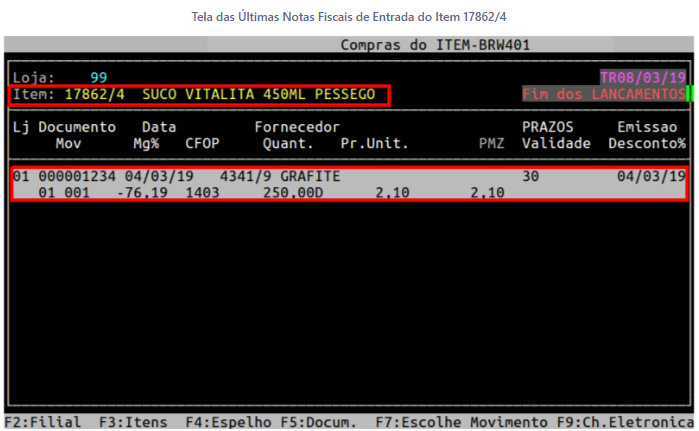No exemplo abaixo, será mostrado as últimas entradas dos item 17862/4.
