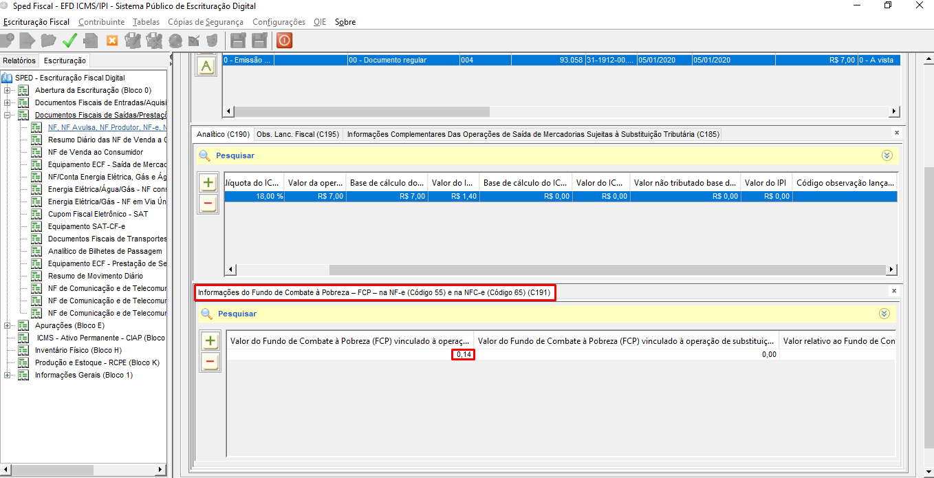 Neste registro foi incluído o modelo de documento 65 (NFC-e), no qual apresentará os valores de FCP dessas notas, caso exista.