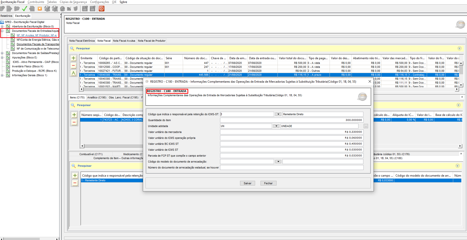 Abaixo segue um exemplo da tela de consulta do registro C180 no validador do Sped Fiscal.