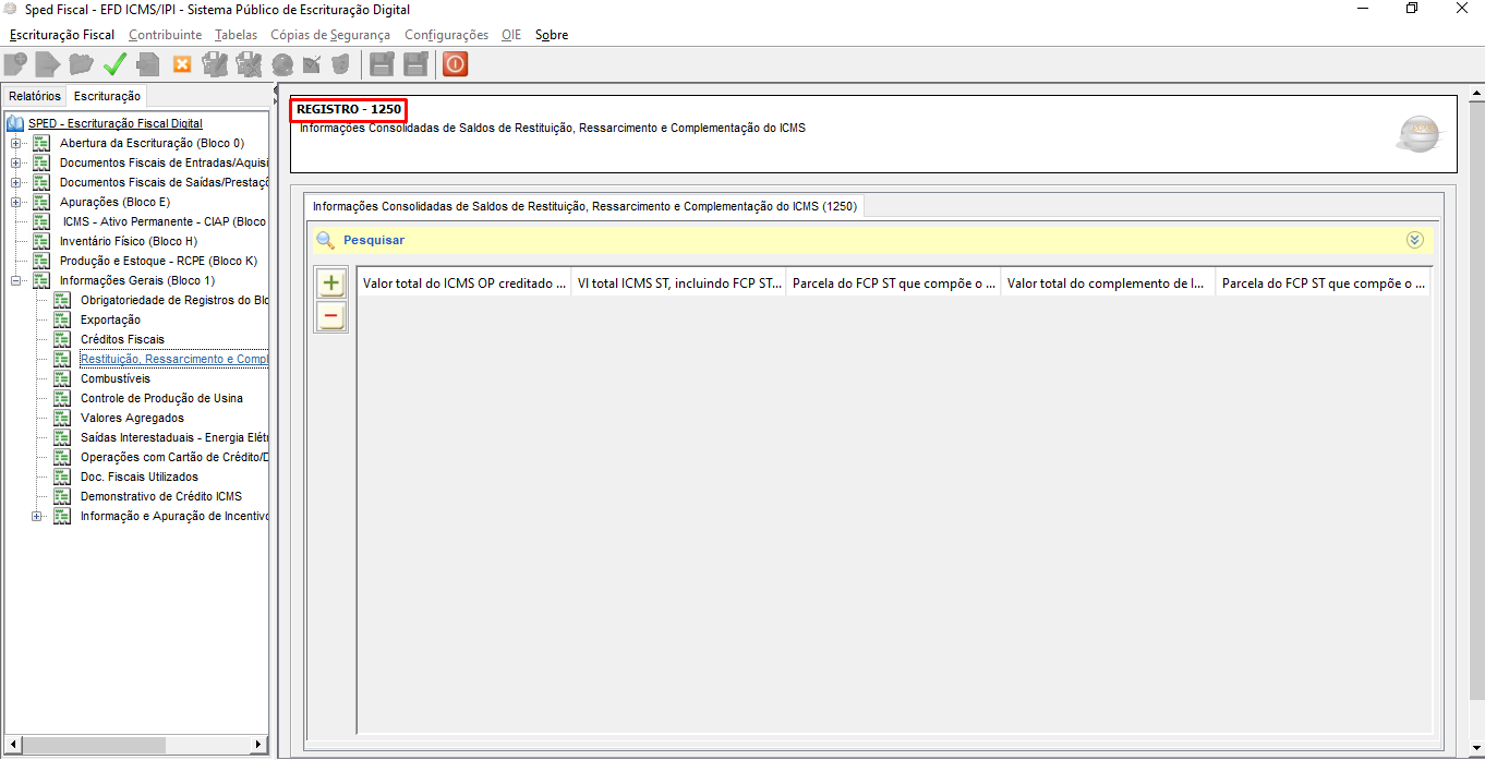 No registro 1250 do bloco 1 e constará as notas específicas.