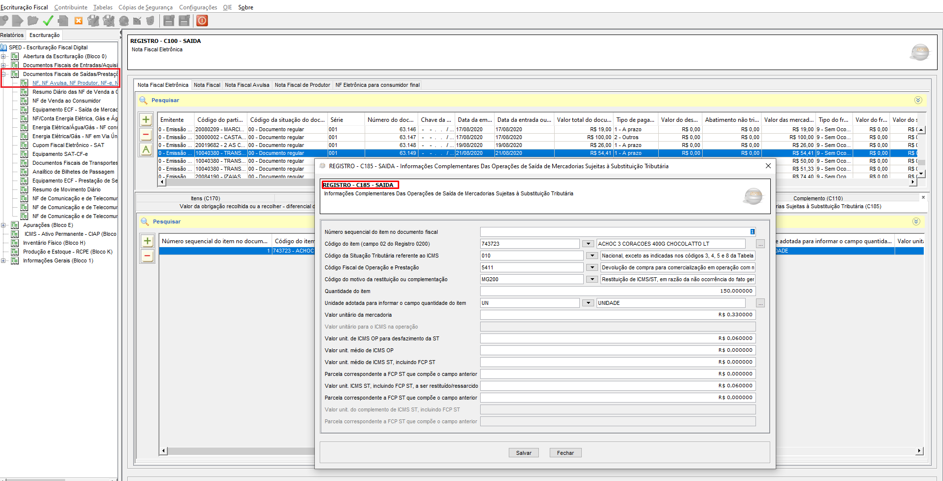Abaixo segue um exemplo da tela de consulta do registro C185 no validador do Sped Fiscal.
