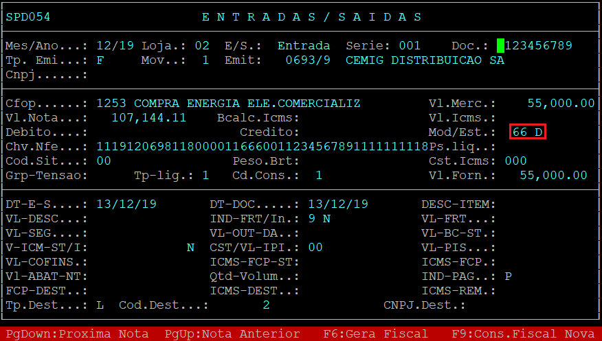 28 | CHV_DOCe | Chave da Nota Fiscal de Energia Elétrica Eletrônica | Gerar com a informação do Campo Chave de Acesso do Lançamento Fiscal |