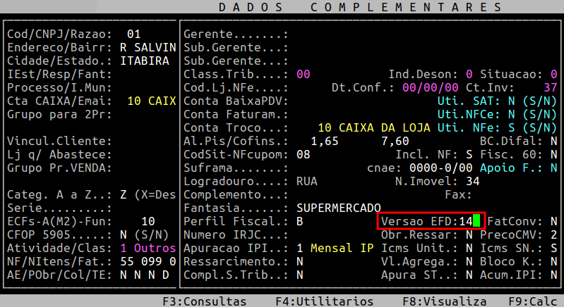 Abaixo segue um exemplo da tela do cadastro da filial, com a versão do sped 14.