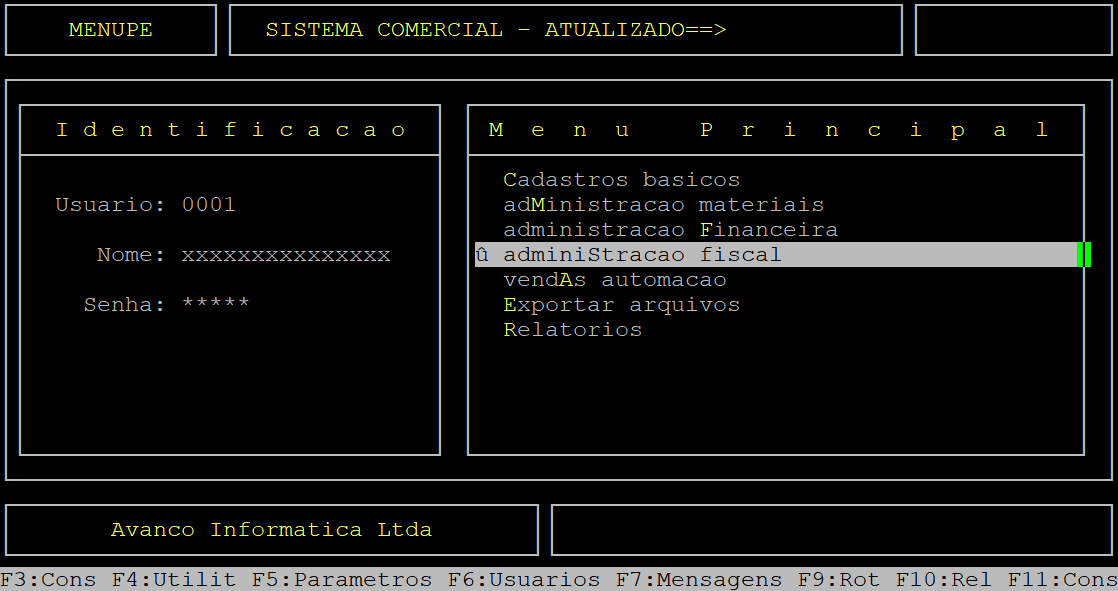 Antes de executar a rotina deste tópico é necessário salvar (backup) os arquivos fisc*AAMM* e nf*AAMM* (sendo: AA = ano com dois dígitos, MM = mês com dois dígitos), situados dentro do diretório : .../sist/arqf.