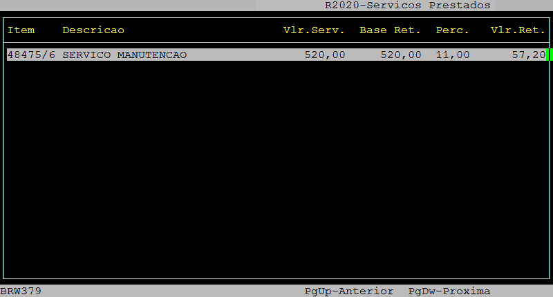 Vlr. Servico: | Será exibido o valor da retenção destacada nas notas fiscais dos serviços subcontratados, caso houver. |