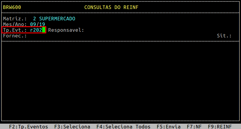 Ao acessar a rotina Consultas do Reinf, informe no campo Matriz a loja desejada e pressione a tecla Enter para alcançar o campo seguinte.