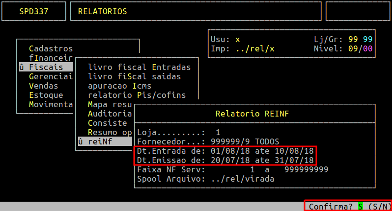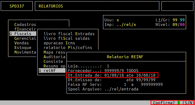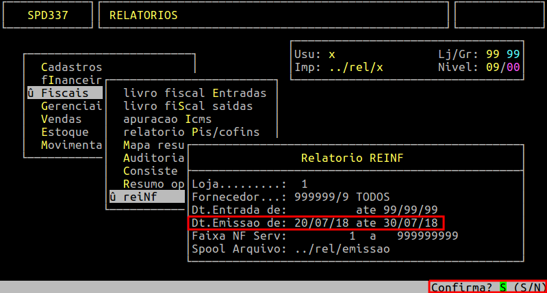 Assim que preencher os campos acima, pressione Enter ou S para confirmar e gerar o relatório.