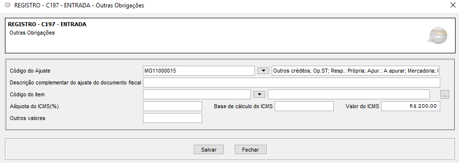 Este registro é gerado automaticamente após a emissão da nota fiscal de Complemento de ICMS. Entretanto, poderá emitir um relatório para conferência dos valores dos ajustes das notas fiscais emitidas, ou consultar na rotina os valores mencionados.