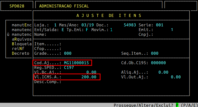 Localização: | Administracao Fiscal / Manutencao Sped / Ajuste de Itens |