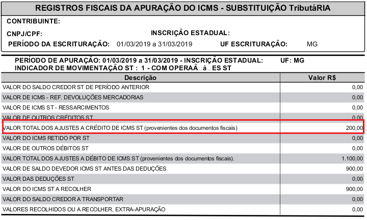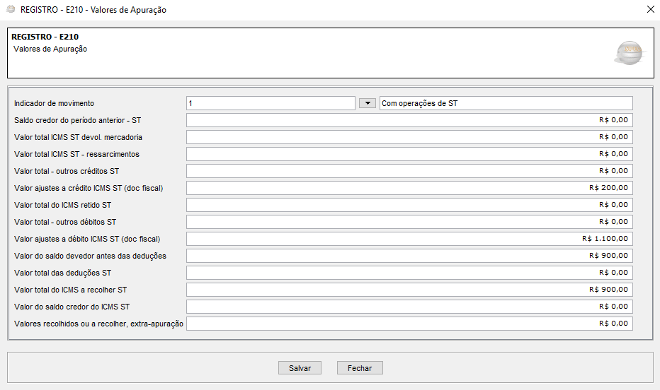 Os valores de ICMS ST lançados na emissão da Nota Fiscal serão apurados no Registro E210 - Apuração do ICMS ST - nos campos Ajustes débitos e Créditos.