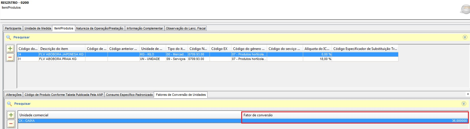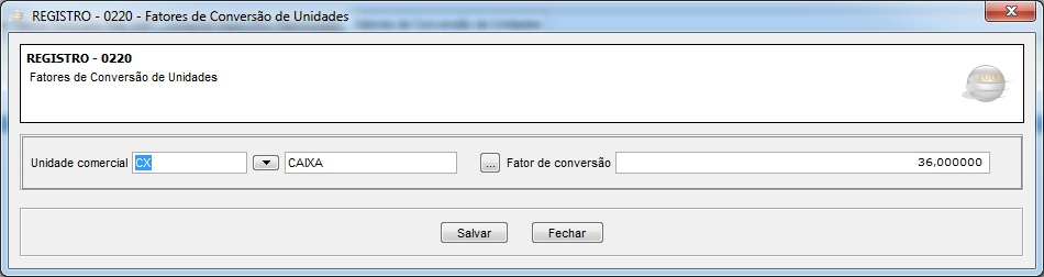 Caso não seja enviado o registro referente ao Fator de Conversão, a fiscalização poderá entender que a CX possui somente uma unidade e não 36 e assim gerar conflito de entendimento em relação ao estoque.