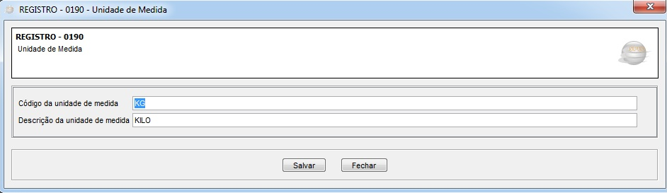 Inserindo Código e Descrição da Unidade de Medida KG - KILO