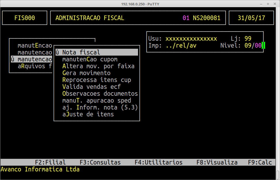 Localização: | Administração Fiscal / Manutenção SPED / Nota Fiscal |