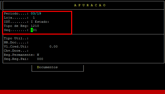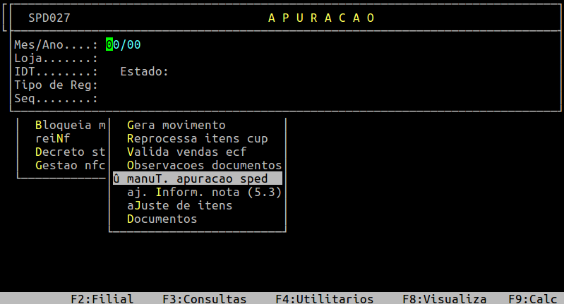 Administracao Fiscal / Manutencao SPED / Manut. Apuracao SPED |