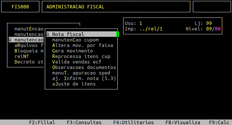 Administracao Fiscal / Manutcao Sped / Nota Fiscal |