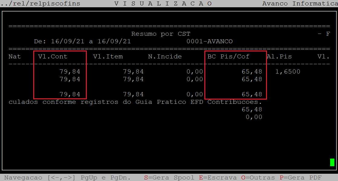 Rotina: | Relatório para Simples Conferência PIS/COFINS |