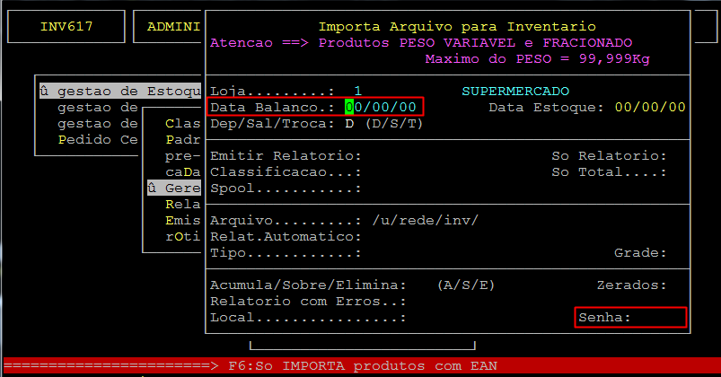 Atualização | Alteração Posição Parâmetro Data Senha Rotina Importa Arquivo Inventário Integral