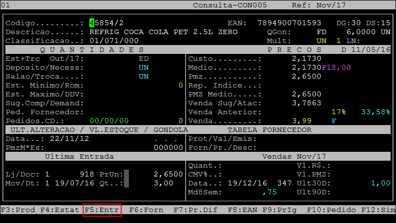 Nessa consulta é possível visualizar o Local de Entrada do Item