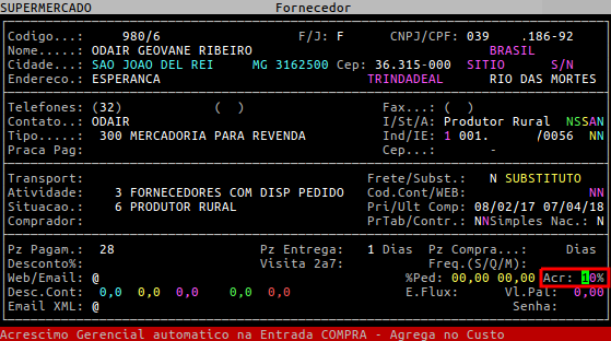 Dúvida | Como Agregar Acréscimo Gerencial Fornecedor Automaticamente Nota Fiscal Integral?