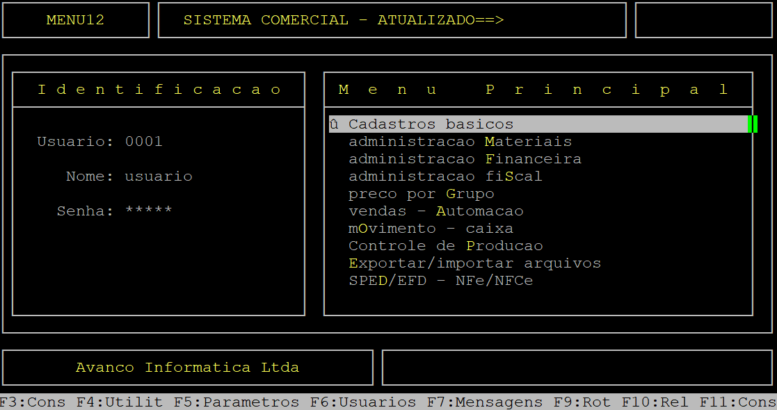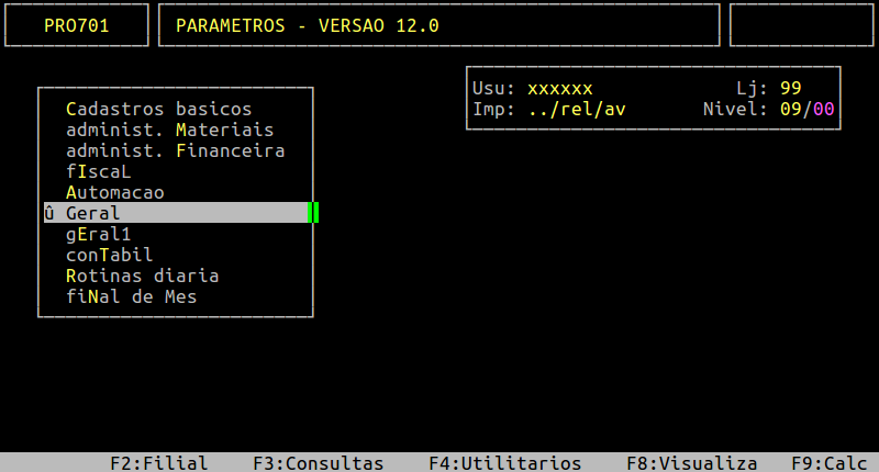 Localização: | Menu Principal / F5 / Geral |