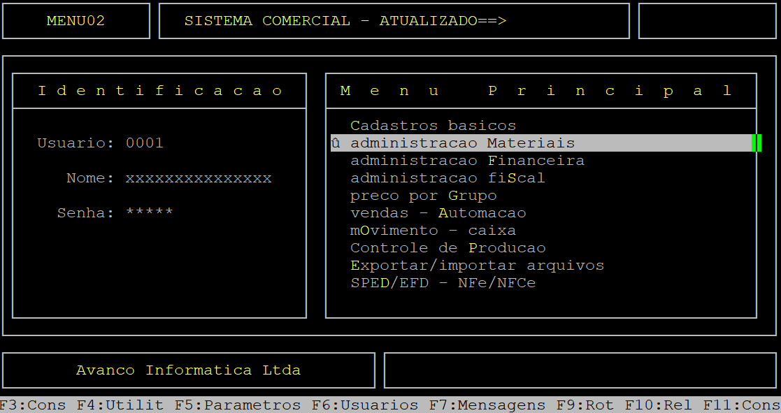 No rodapé do sistema existem algumas funções da rotina, sendo elas: