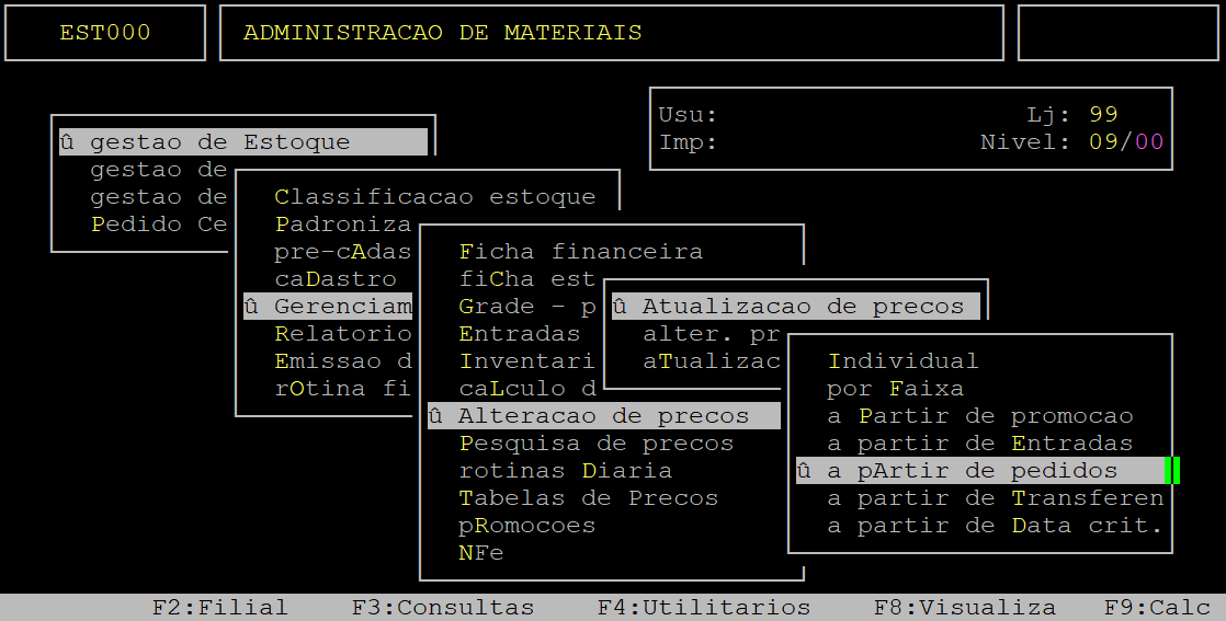 | Localização: | Administracao Materiais / Gestao de Estoque / Gerenciamento Filial / Alteracao de precos / Atualizacao de Precos / a Partir de Pedidos |