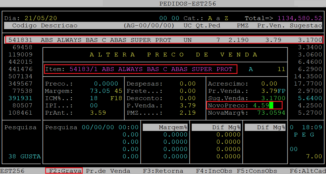 Para alterar preço dos produtos a partir de pedidos, acesse a localização citada acima.
